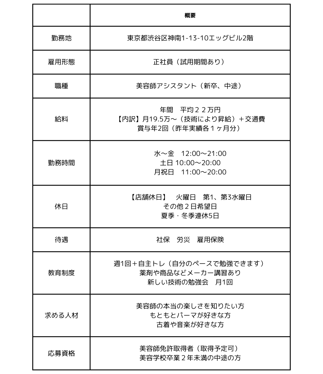 ここには日々の研究によって磨きぬかれた深いパーマ技術がある。じっくりとお客様と向き合って対話できる時間がある。美容師としてピュアなクラフトマンシップがある。ここは、技術と真心のある美容師さんが育つところ。ちなみに音楽や古着のカルチャーと犬が好きなら、なおバッチリ!